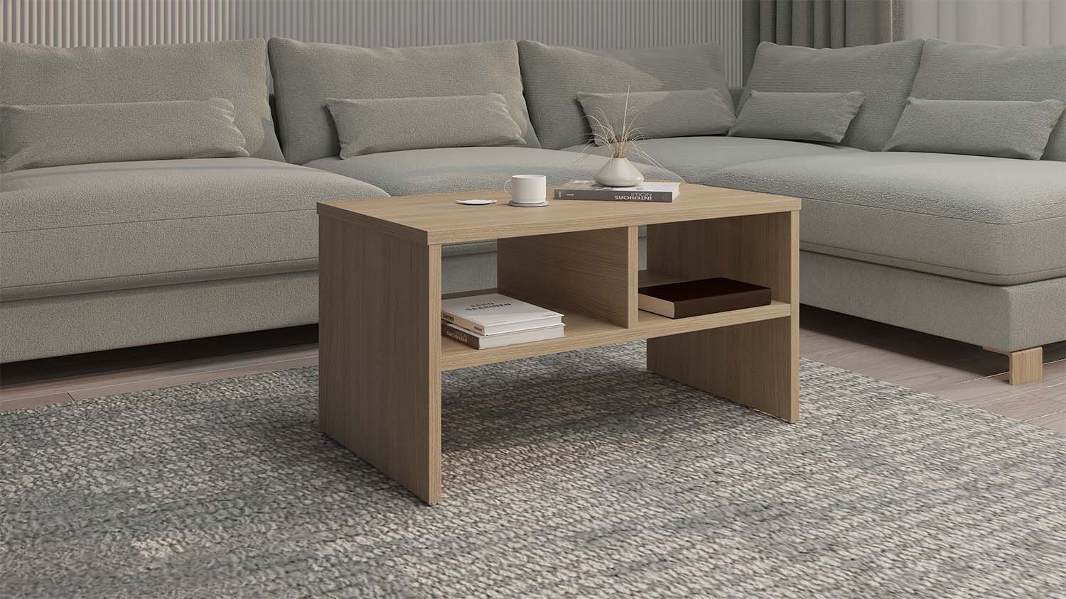 عملية بتصميم هندسي مما يجعلها قطعة ديكور تناسب أي مساحة ,مزودة برفين متقابلين لإضافة لمسة تنظيمية.