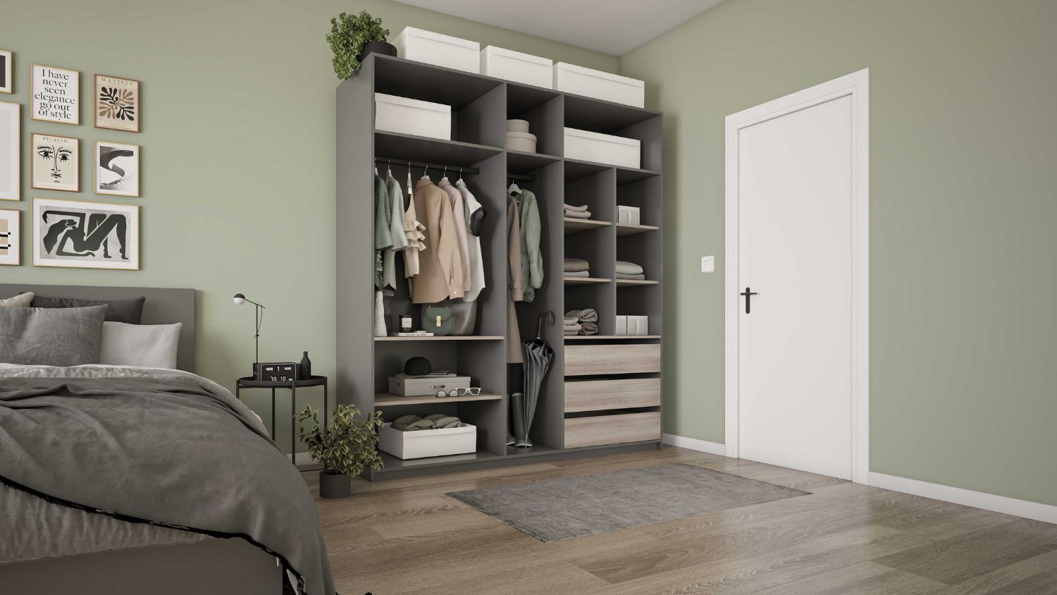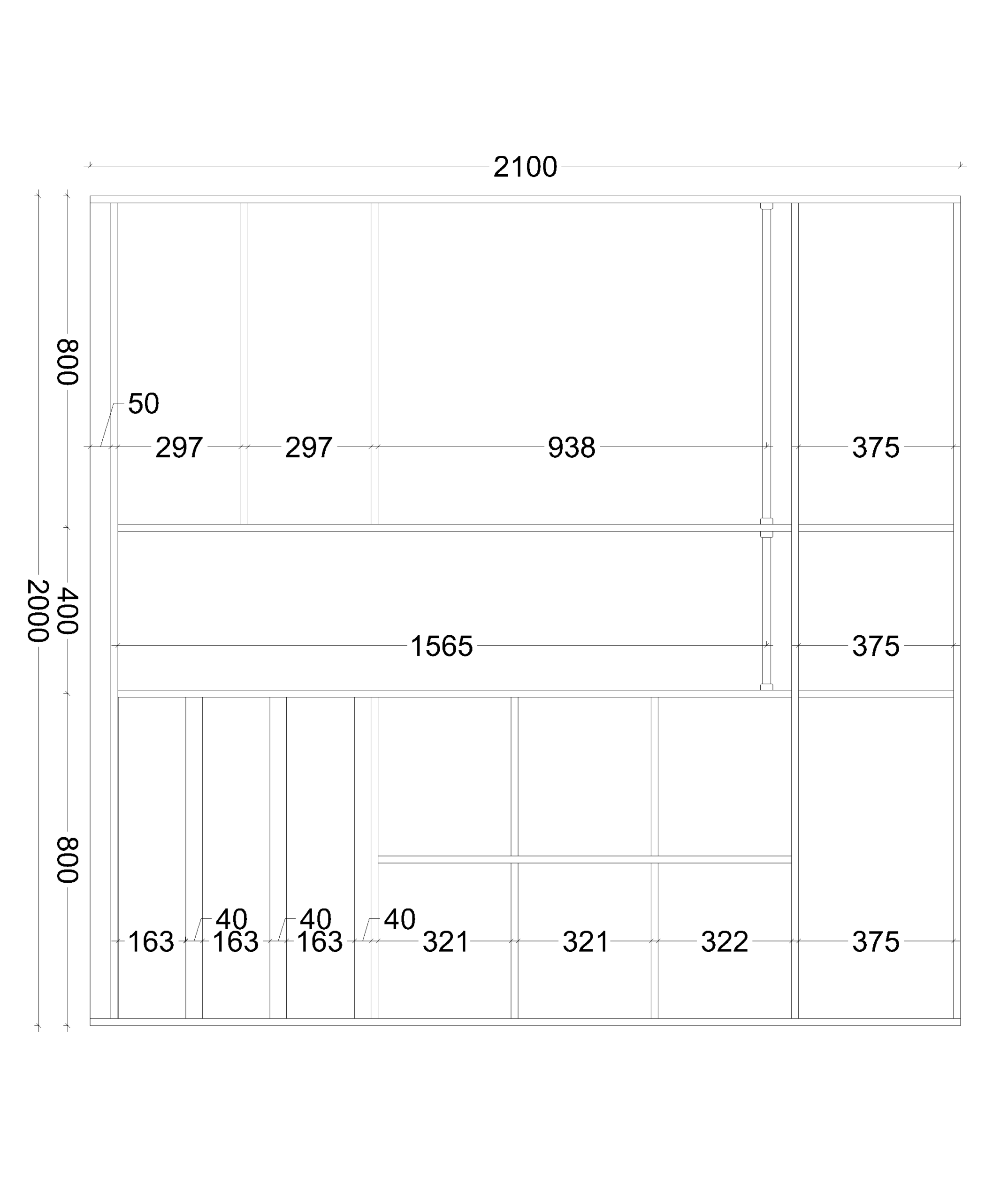 – بمقاس 200 سم عرض × 60 سم عمق × 210 سم ارتفاع